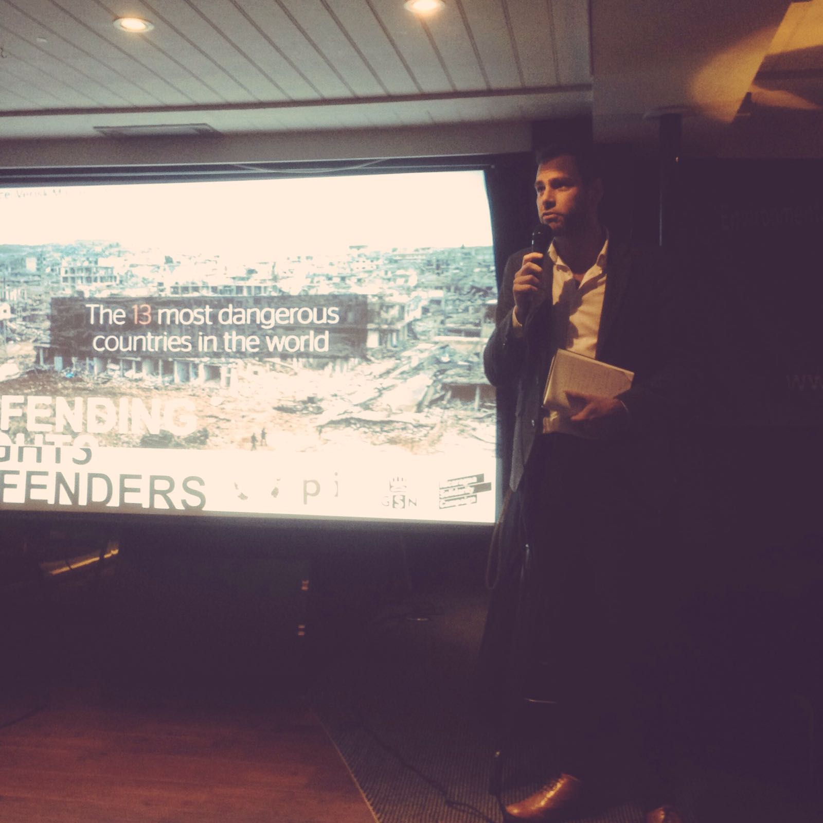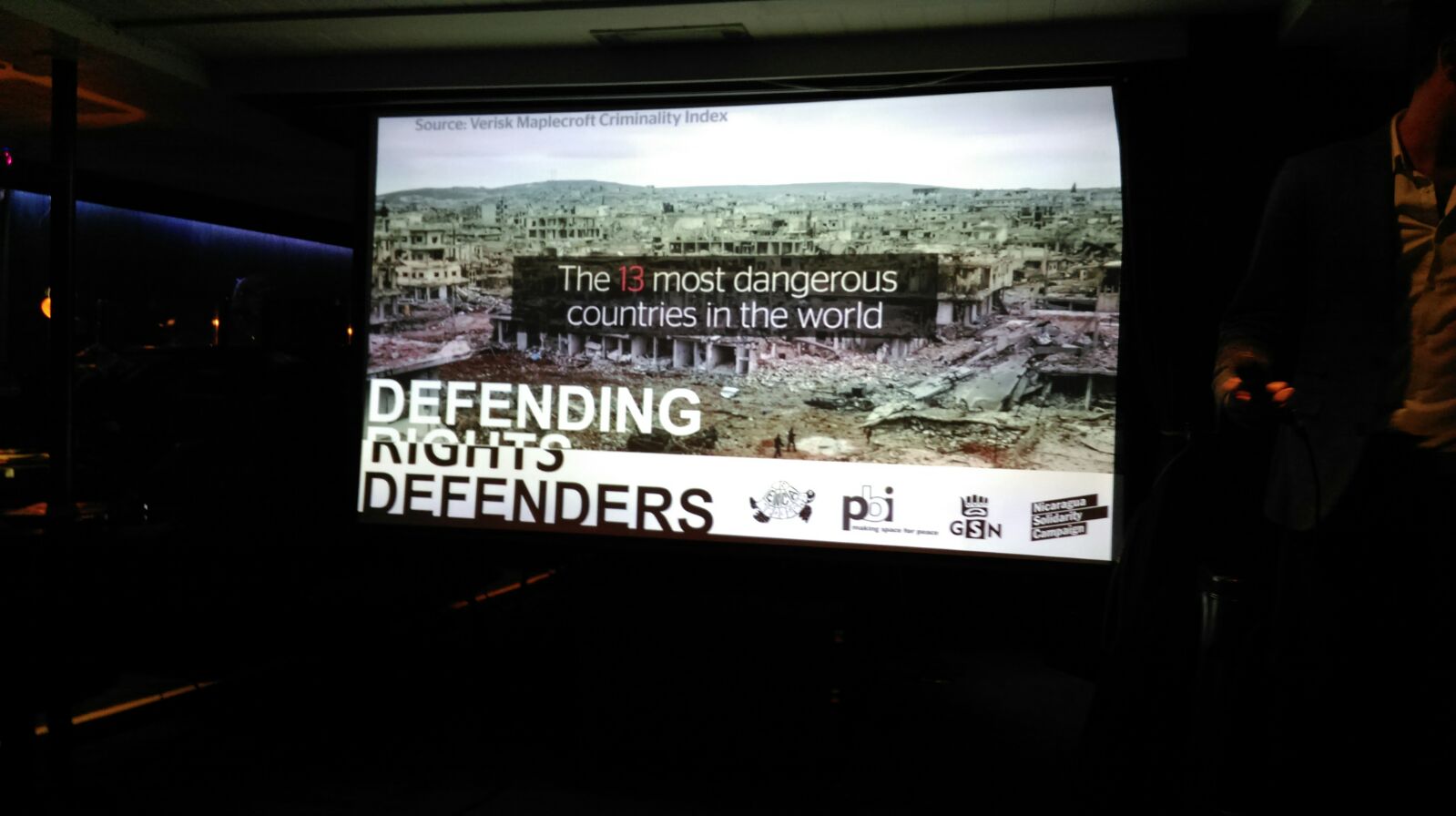 More case studies of abuses of rights defenders from around the region were then presented. Following Aurelia and the other case studies, Emily Spence of Peace Brigades International took to the stage to explore ways in which rights defenders can be defended and supported through the work of PBI and other solidarity networks. The presentations were rounded off with a lively and interesting Q&A session.