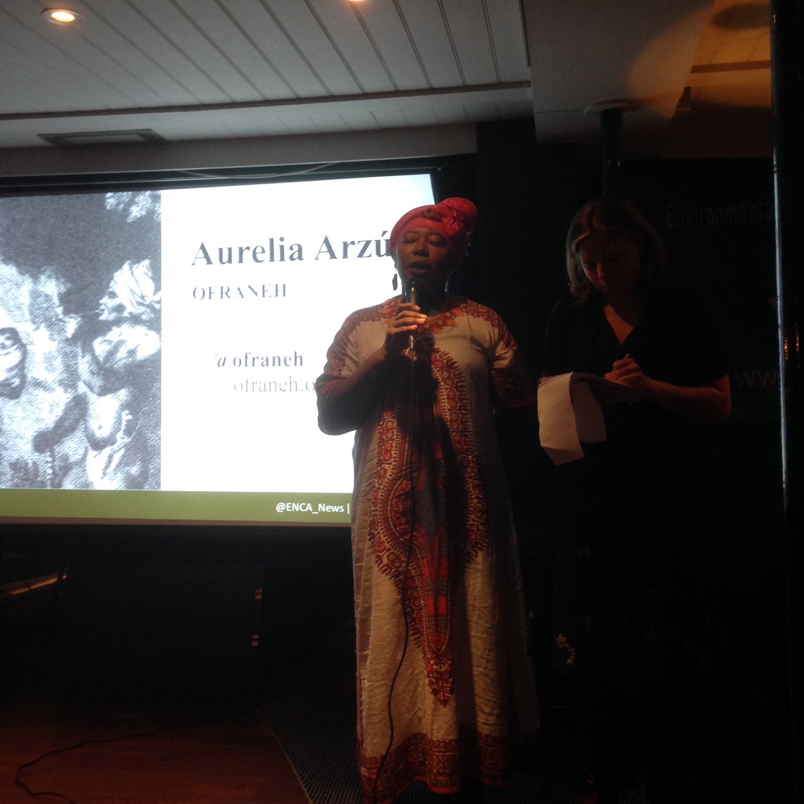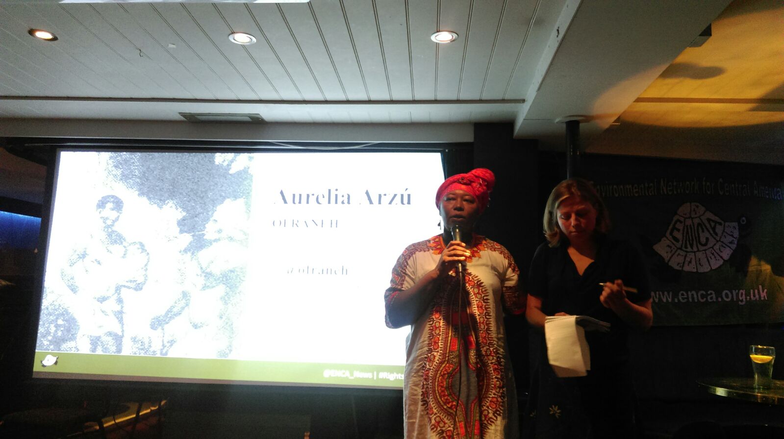 Following this introduction we were delighted to be joined by Aurelia Martina Arzú Rochez, vice-coordinator and spiritual guide of OFRANEH, who gave a powerful and personal account of living with the oppression of being an activist in Honduras. The Garífuna people are currently experiencing illegal takeovers of their ancestral lands by Canadian investors who are intent on developing a tourism industry that caters to wealthy foreign cruise passengers but which displaces and dispossesses the Garífuna people from their land. Moreover they suffer constant criminalisation by the authorities which are intent on protecting international investors rather than Honduran people.
